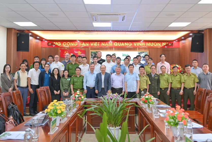 Các đại biểu chụp ảnh tại Hội nghị công bố và triển khai “Kế hoạch hành động tái hoang dã Vườn quốc gia Cúc Phương giai đoạn 2026 – 2035, tầm nhìn đến năm 2050”. Ảnh: Cúc Phương.